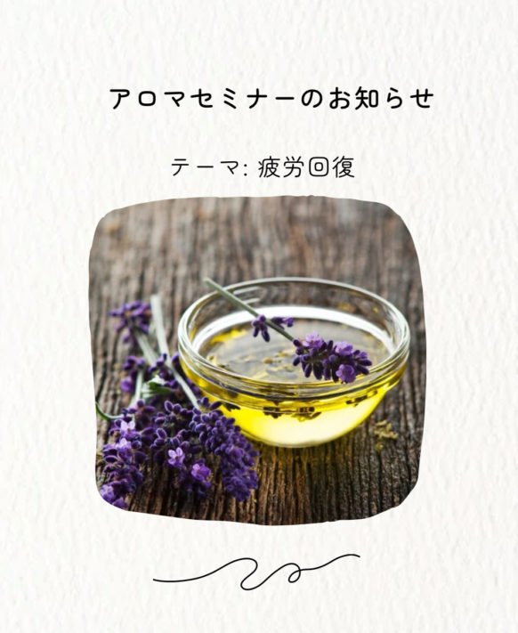 『疲労回復に役立つアロマ』をオンラインセミナーにてご紹介いたします。