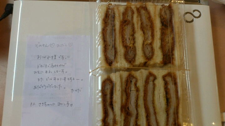 カツサンドの上に高田さんの置き手紙