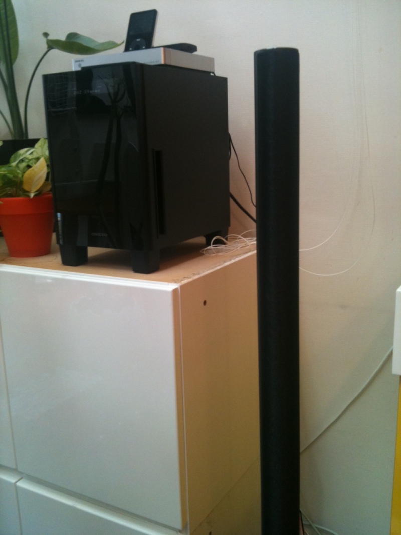 このポール状のスピーカー&アンプは、ONKYOが誇る室内をまろやかな音に包み込む
