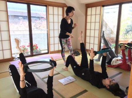 リングを胸やお腹に当ててその抵抗を感じながら丁寧に呼吸していくと接している部位が活性化されて呼吸がとてもスムースになります。