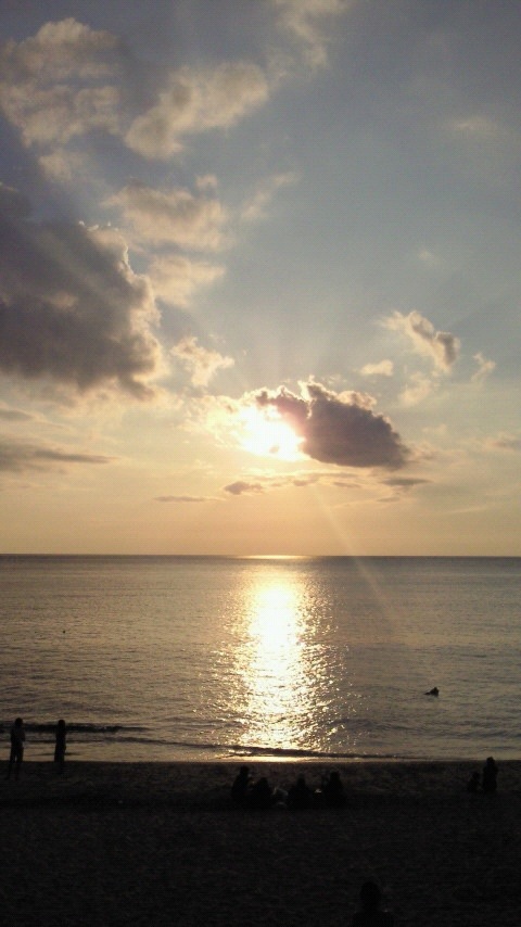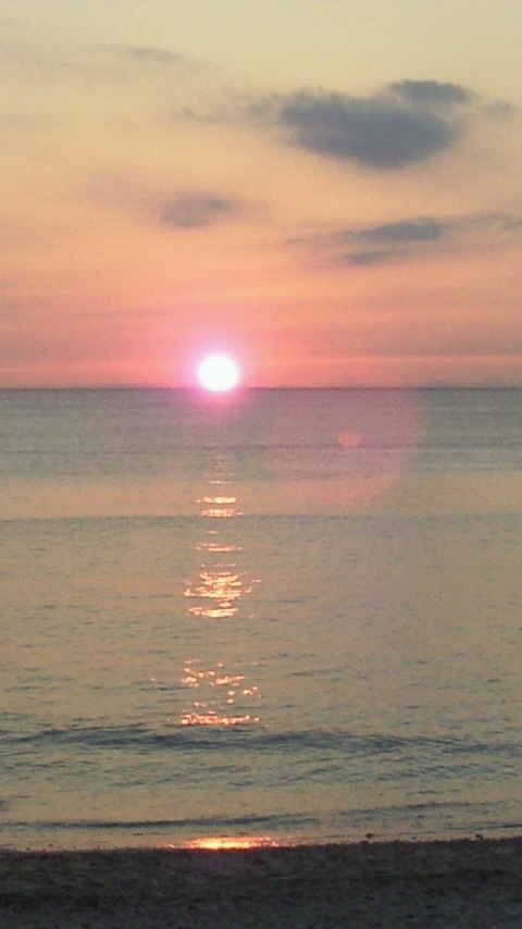 今日は奄美大島出身の友人に頂いた、奄美で一番夕日が綺麗に見えるスポットからの沈む夕日の写メを・・・感謝m(__)m!